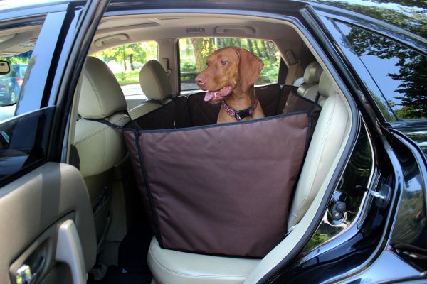 Автогамак для собак Галант коричневый с защитой дверей 120х145см